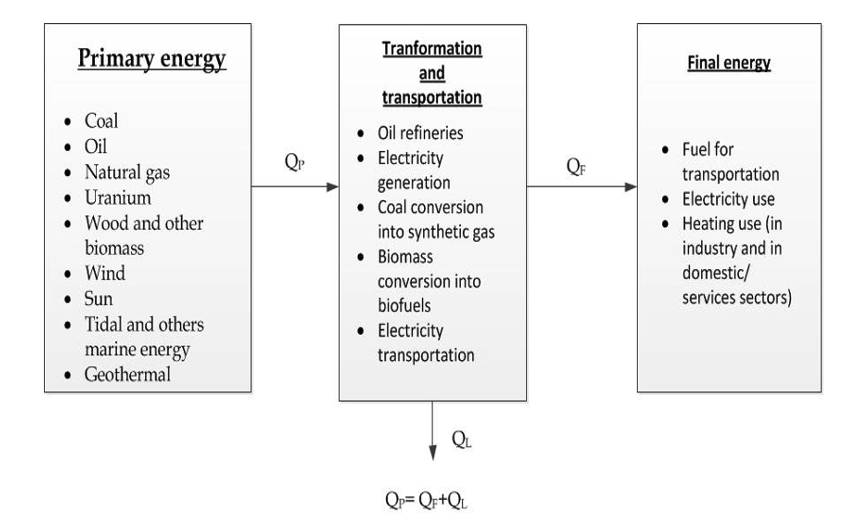 While nature provides primary energy, it is rarely in a form that is easy to use or handle directly. Converting primary energy into final energy always involves transformation processes that reduce the original energy content. In power plants or oil refineries, for instance, primary energy is converted into more convenient forms, such as electricity or refined fuels. Inevitably, this conversion entails efficiency losses. Consequently, the amount of final energy is always lower than the amount of primary energy, and in some cases, the difference can be significant. Furthermore, final energy must be transported to the end user, causing additional losses, particularly for electricity where energy is dissipated in transmission and distribution lines before reaching consumers.